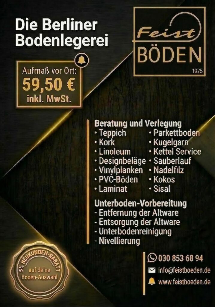 • Ladentermin (Detmolder Straße 2, 10715 Berlin): Die Beratung und die Angebotserstellung vor Ort im Ladengeschäft sind weiterhin kostenfrei.